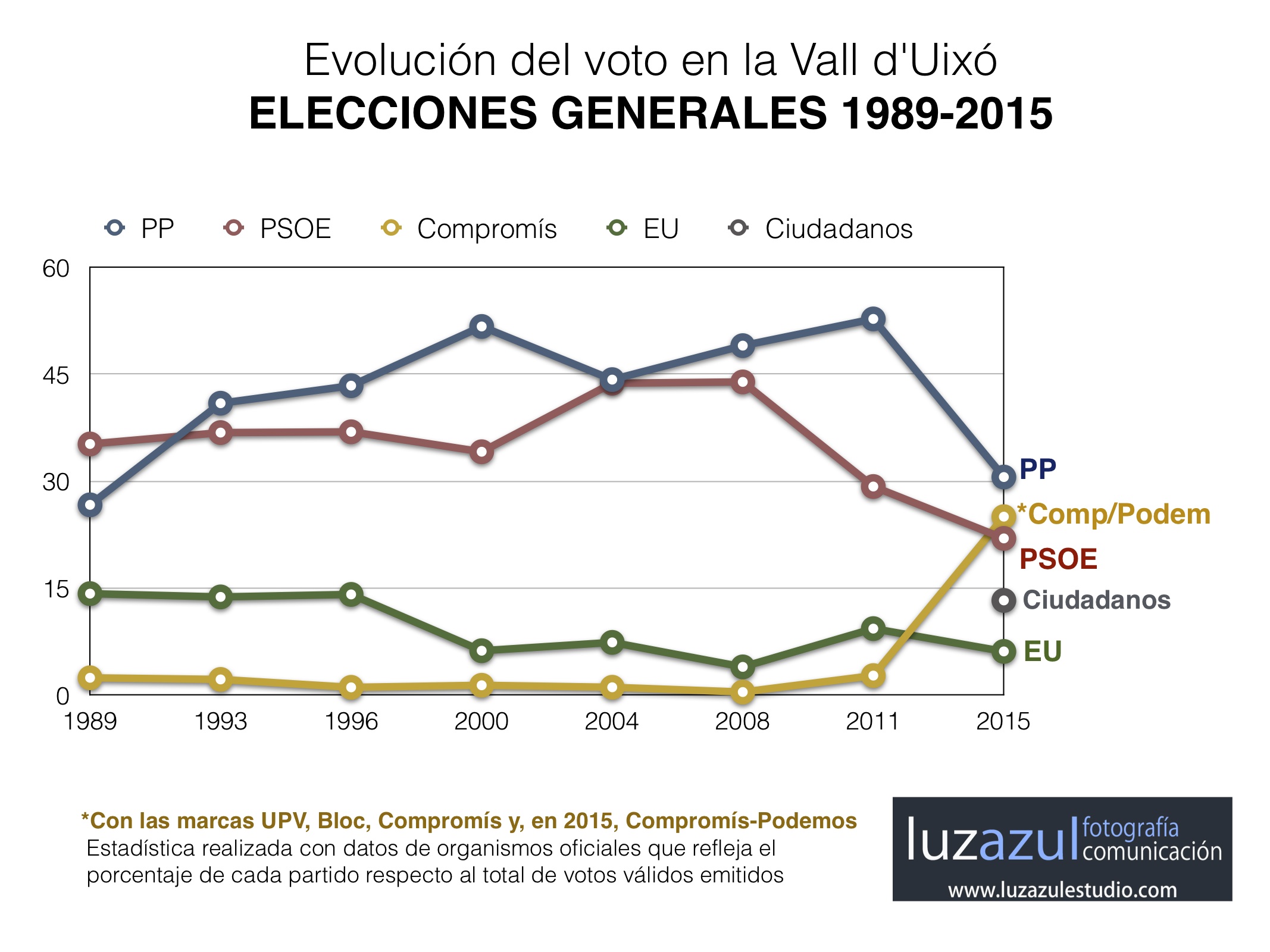 grafico 1 diciembre 20, 2015 2134 × 1600 Radiografía del 20D en La Vall d’Uixó Evolución del voto en la Vall d’Uixó durante las elecciones generales desde 1989 Comparte Comparte en Facebook (Se abre en una ventana nueva) Facebook Compartir en X (Se abre en una ventana nueva) X Haz clic en Pinterest (Se abre en una ventana nueva) Pinterest Enviar un enlace a un amigo por correo electrónico (Se abre en una ventana nueva) Correo electrónico Imprimir (Se abre en una ventana nueva) Imprimir Me gusta Cargando...